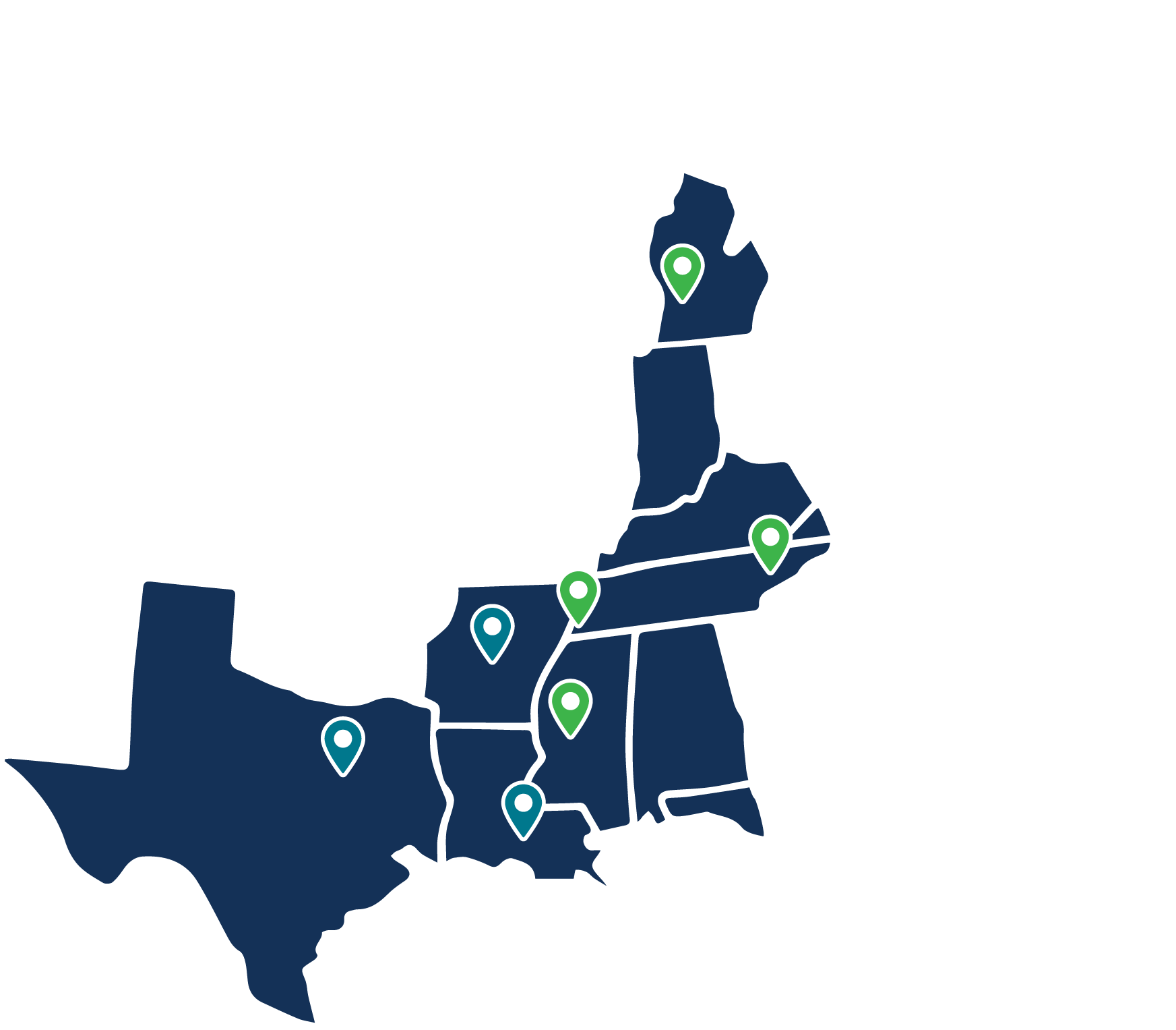 Service Only Locations Available in Baton Rouge, LA, Dallas, TX, and Little Rock, AR.